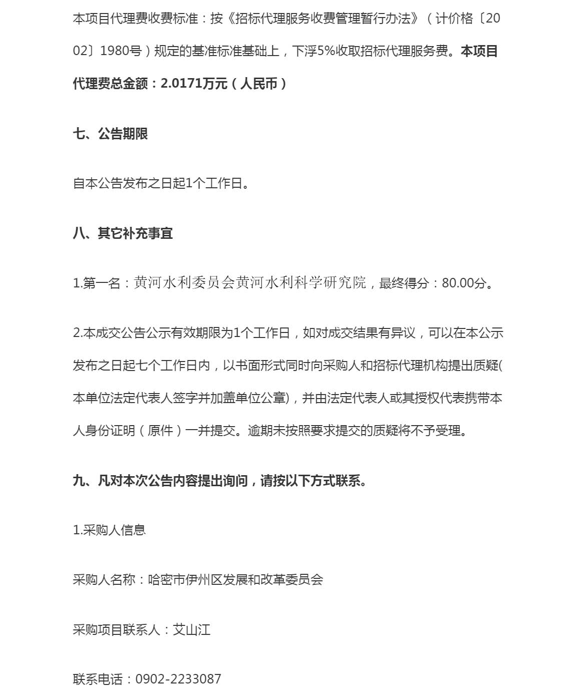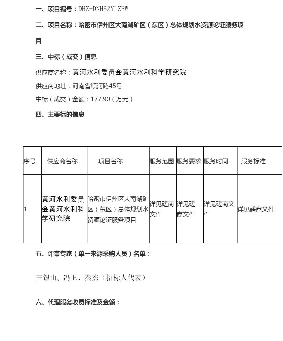 哈密市伊州区大南湖矿区(东区)总体规划水资源论证服务项目成交结果公告